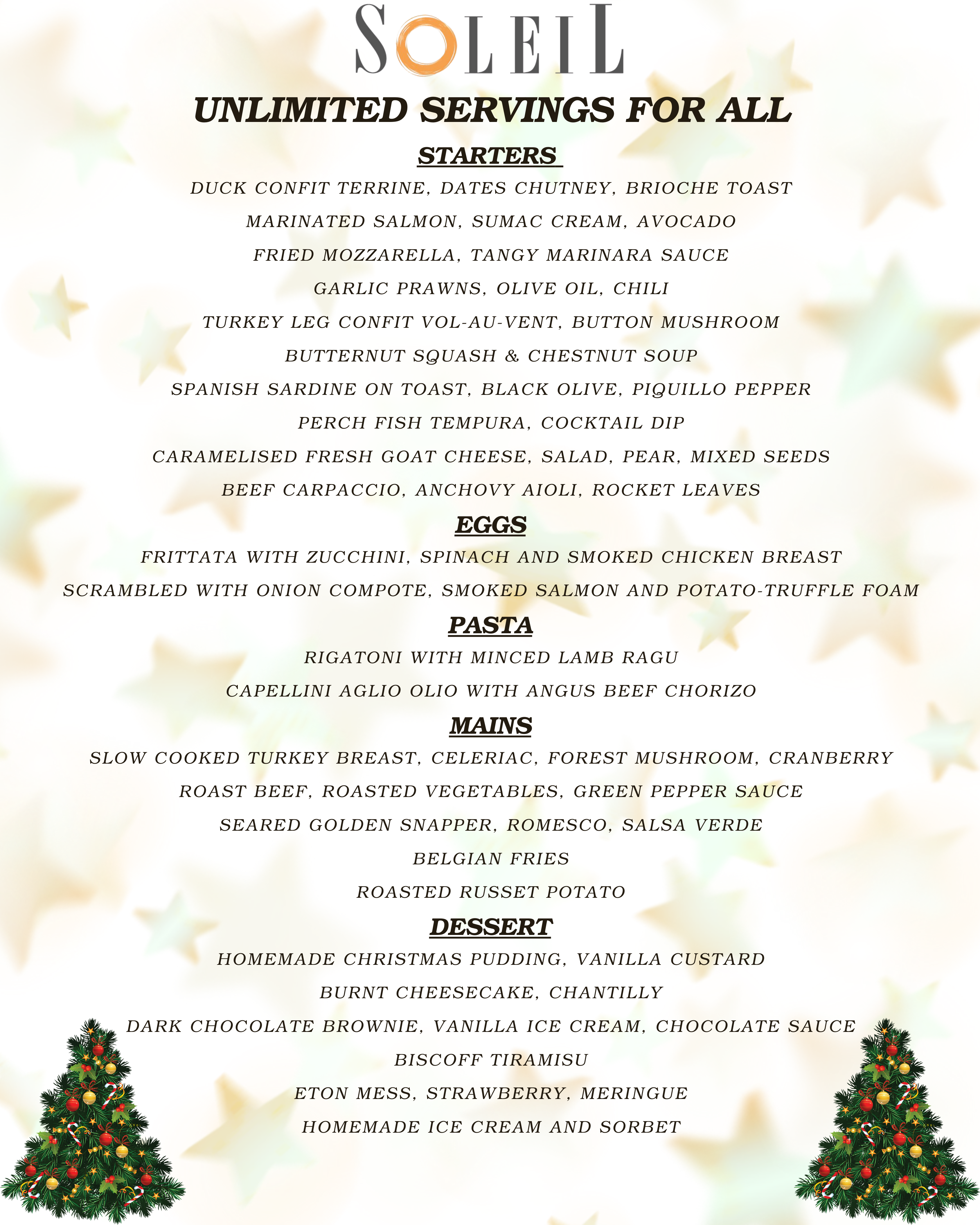 ✨ Celebrate Christmas Day at Soleil with a lavish Unlimited-Servings Brunch.